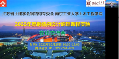 《钢结构设计原理》是ylzzcom永利总站线路检测国家首批一流本科课程,在长期的课程建设过程中,形成了科教促进、产教融合的特色,课程实验的改革创新进一步提升了课程人才培养的成效,得到了学生的普遍欢迎。本次在线交流会得到了江苏省土木建筑学会和ylzzcom永利总站线路检测ylzzcom永利总站线路检测的大力支持,各项活动按照计划顺利完成。