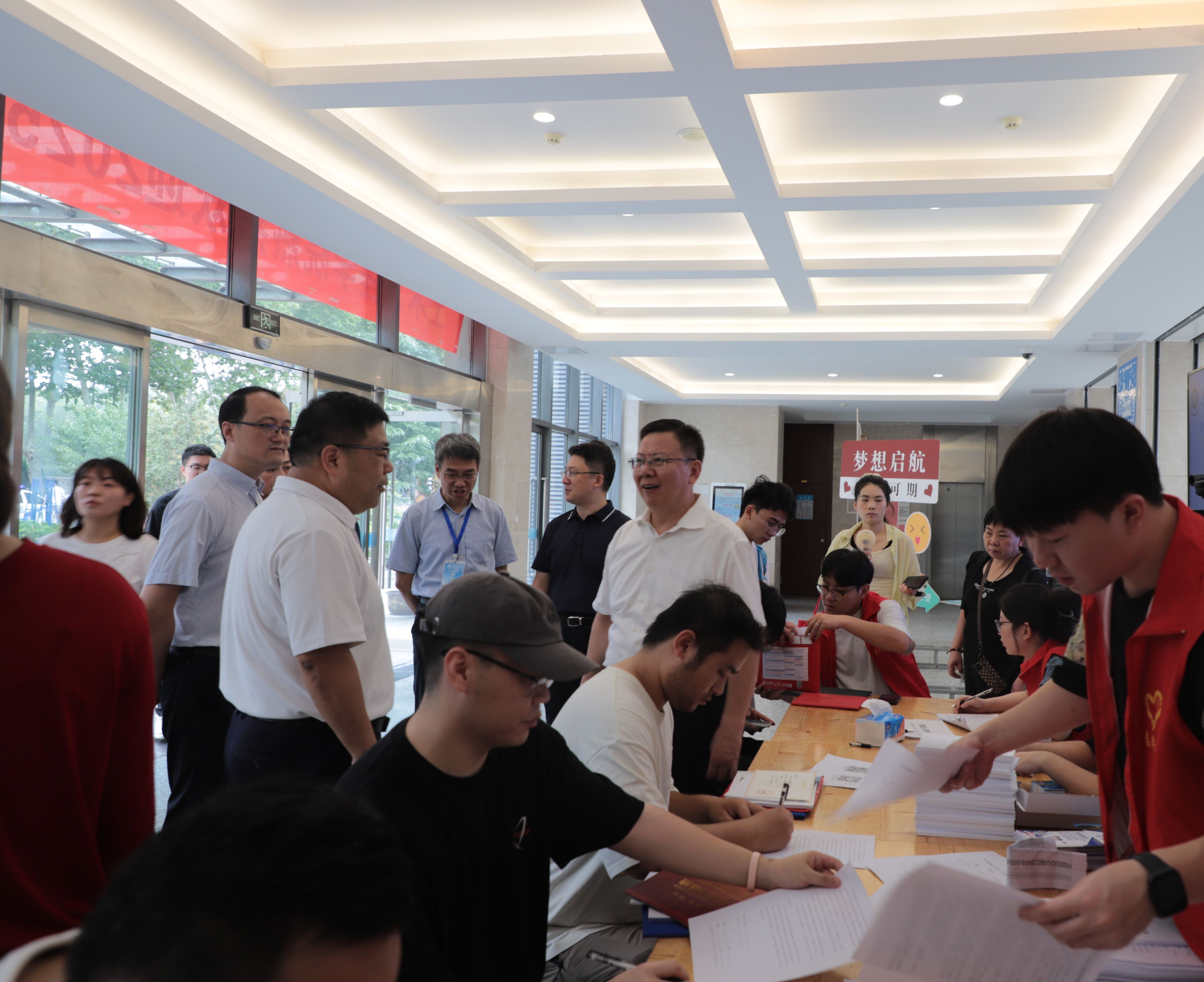 迎新期间,校长蒋军成,副校长刘大卫、戴志晖,校长办公室、研究生院领导亲临土木学院迎新现场,详细了解新生报到情况,慰问奋战在一线的迎新老师和志愿者,勉励同学们要聚焦科学前沿,勇担时代使命,筑牢梦想根基。报到现场设置了打卡点,新同学们纷纷驻足,用镜头记录下自己大学生活的第一页。